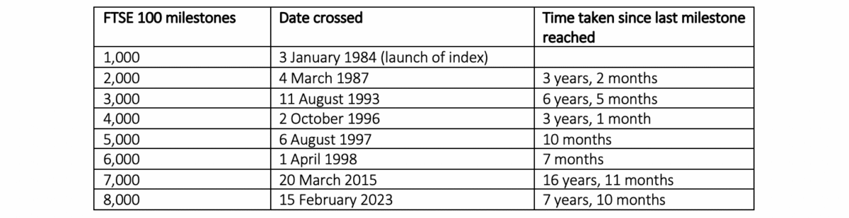 FTSE 100 milestones