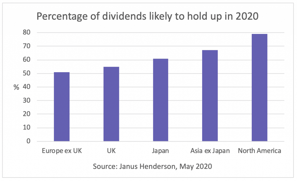 The latest Global Dividend Index from Janus Henderson suggests that dividends around the world could fall by between 15% and 35% on aggregate this year^, with the outlook for different countries varying quite considerably, depending on the extent of epidemic, the severity of lockdown, policy response, regulation, sector mix, dividend seasonality and dividend policy.