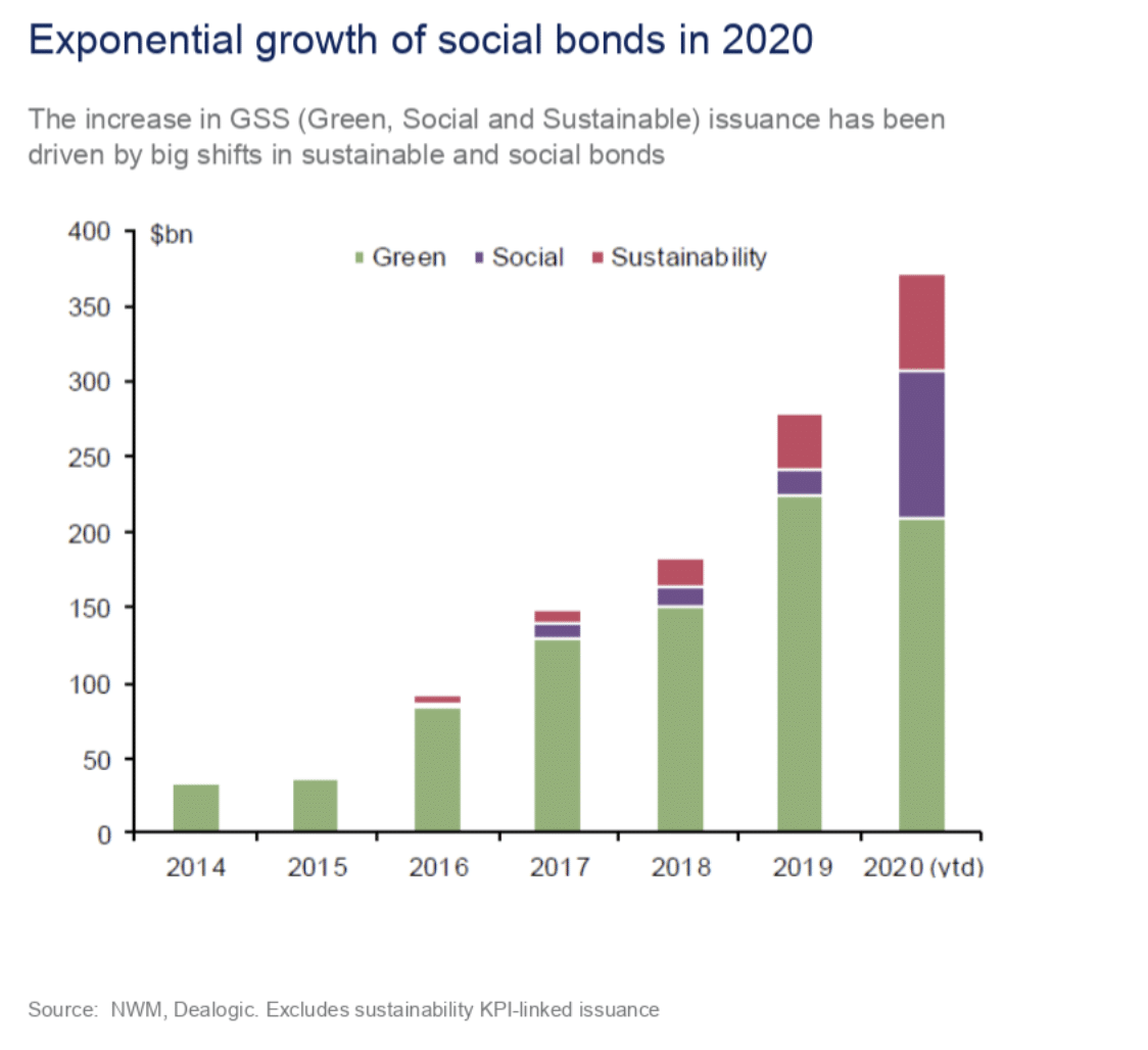 “Corporate social bond issuance is also on the rise. With consumers now more attuned to social issues, social bonds provide companies with an instrument to demonstrate support for their wider stakeholders, from employees to customers and local communities.”