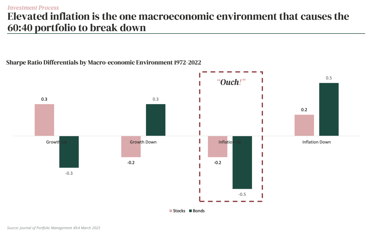 The main concern which stands out is the ongoing threat of inflation. Prior to the issues with the US and Iran, the team noted continued bullish forecasts for equity markets – all of which are anchored to the idea of falling rates and infrastructure investment. The epicentre of this worry is that while equity markets look expensive, bond markets look fragile because of huge government deficits. The fiscal deficits of most economies have grown since Covid as many spent money they simply did not have. All of this points to inflation running at higher-than-expected levels for a prolonged period – and CGT says elevated inflation is one of the macroeconomic environments that causes the 60/40 portfolio to break down.