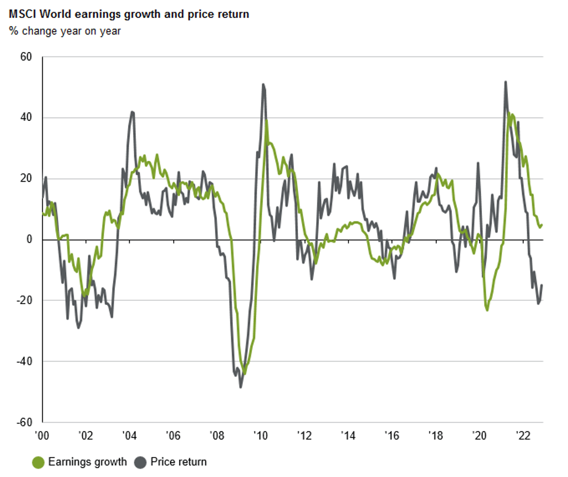 Source: MSCI, Refinitiv Datastream, J.P. Morgan Asset Management. Earnings are 12-month forward earnings expectations. Past performance is not a reliable indicator of current and future results. Data as of 28 November 2022.