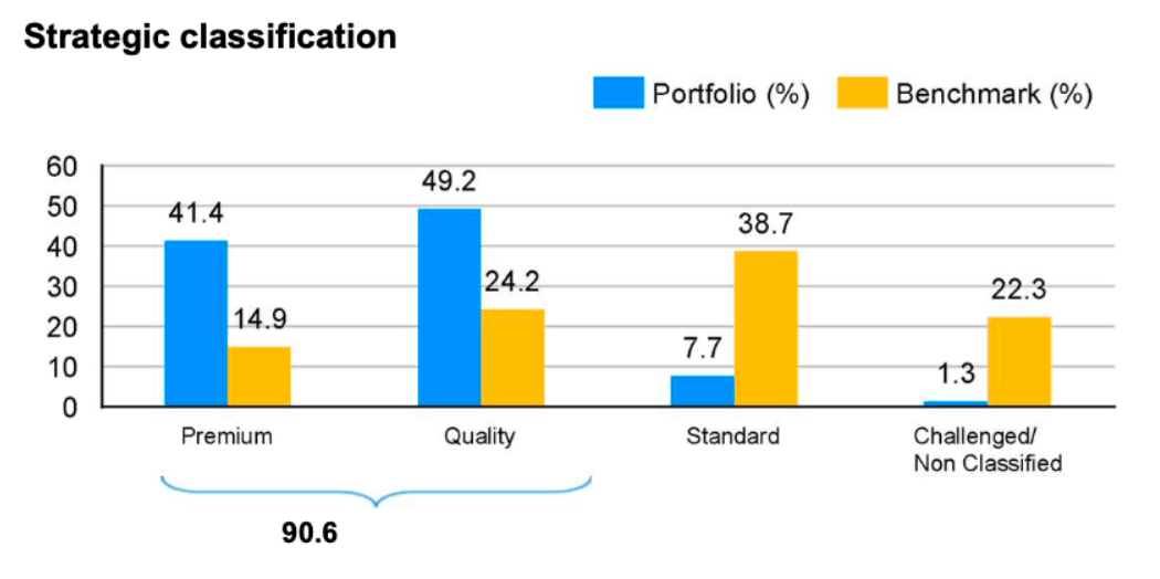 Recent performance has been slightly challenging, with Peck pointing to volatility and the value-driven market of the past few years – led by many of the low-quality stocks JMG avoids. However, the makeup of the portfolio, as evidenced by the chart below, demonstrates the resilience of JMG, which has only slightly underperformed the benchmark over the past three years (14.3% vs. 20.6% for the MSCI Emerging Markets Index)^^^.
